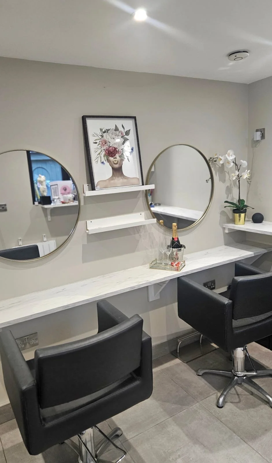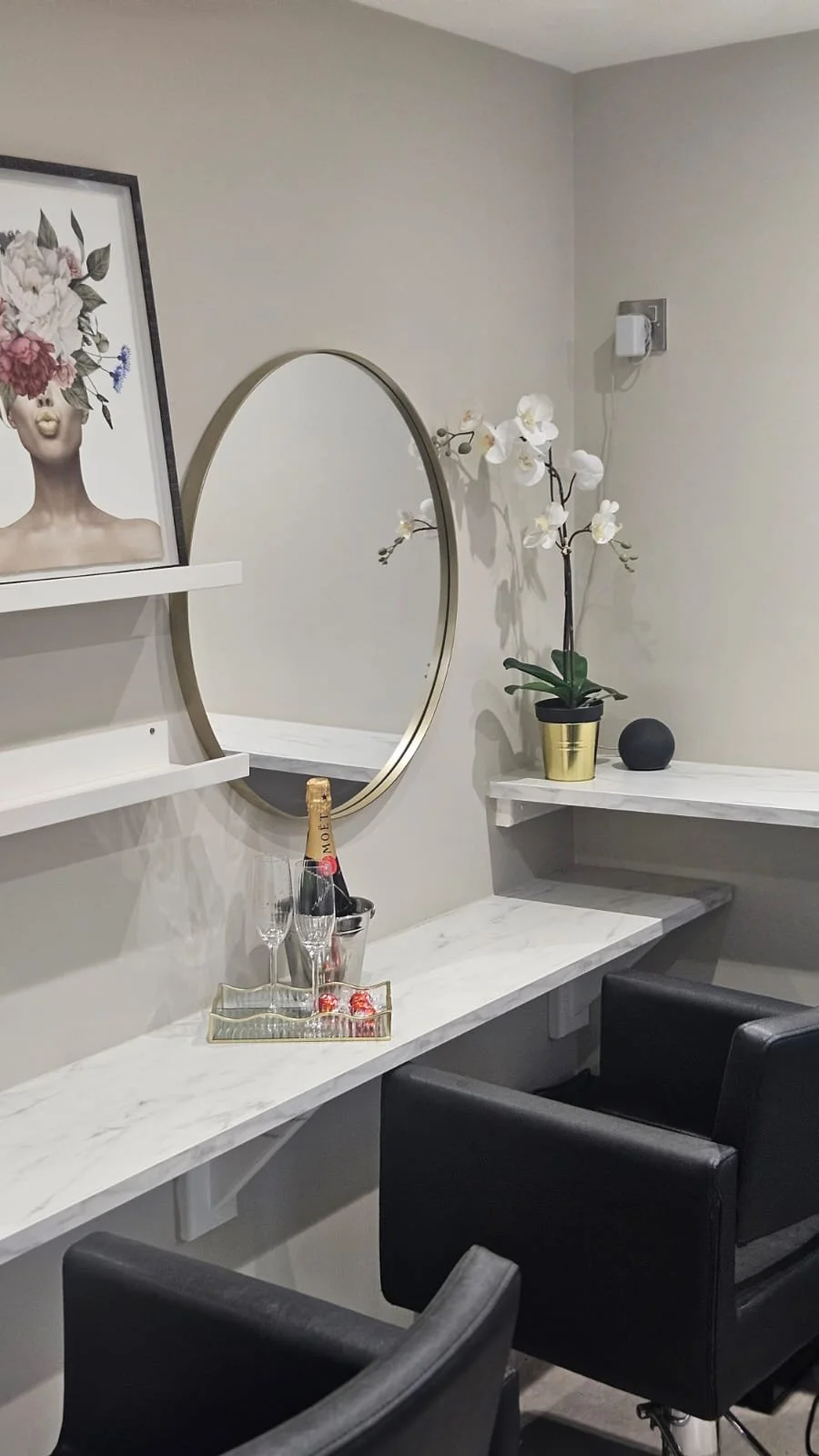 My private studio in Bray was designed as a calm, exclusive space for bridal trials and one-on-one appointments. Alongside wedding prep, I offer a range of cutting and styling services, up-styles by request, as well as colour, highlights and balayage.
